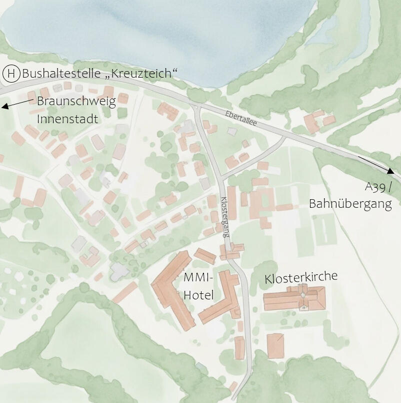 Die Trauung findet in der Klosterkirche Braunschweig-Riddagshausen statt, die sich im Klostergang 65 in 38104 Braunschweig befindet.Später feiern wir im MMI-Hotel direkt gegenüber, im Klostergang 53. Die Location wird an dem Wochenende nur von uns genutzt. Für alle, die möchten, ist vor Ort also ein Schlafplatz garantiert.